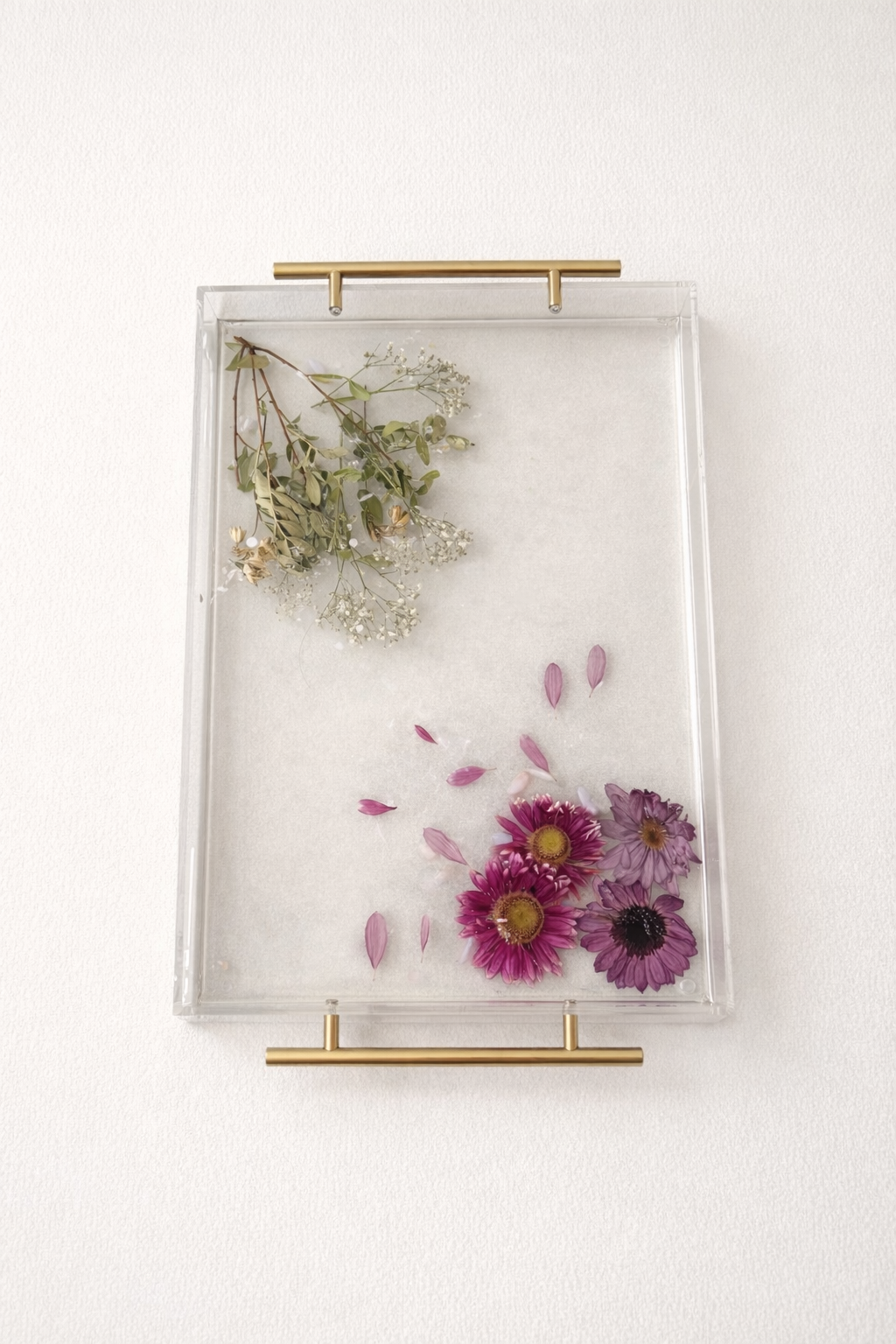 Dieses hochwertige Acrylglas Tablett mit Epoxidharz-Konservierung macht deine Hochzeitsblumen zu einem zeitlosen Erinnerungsstück für dein Zuhause.