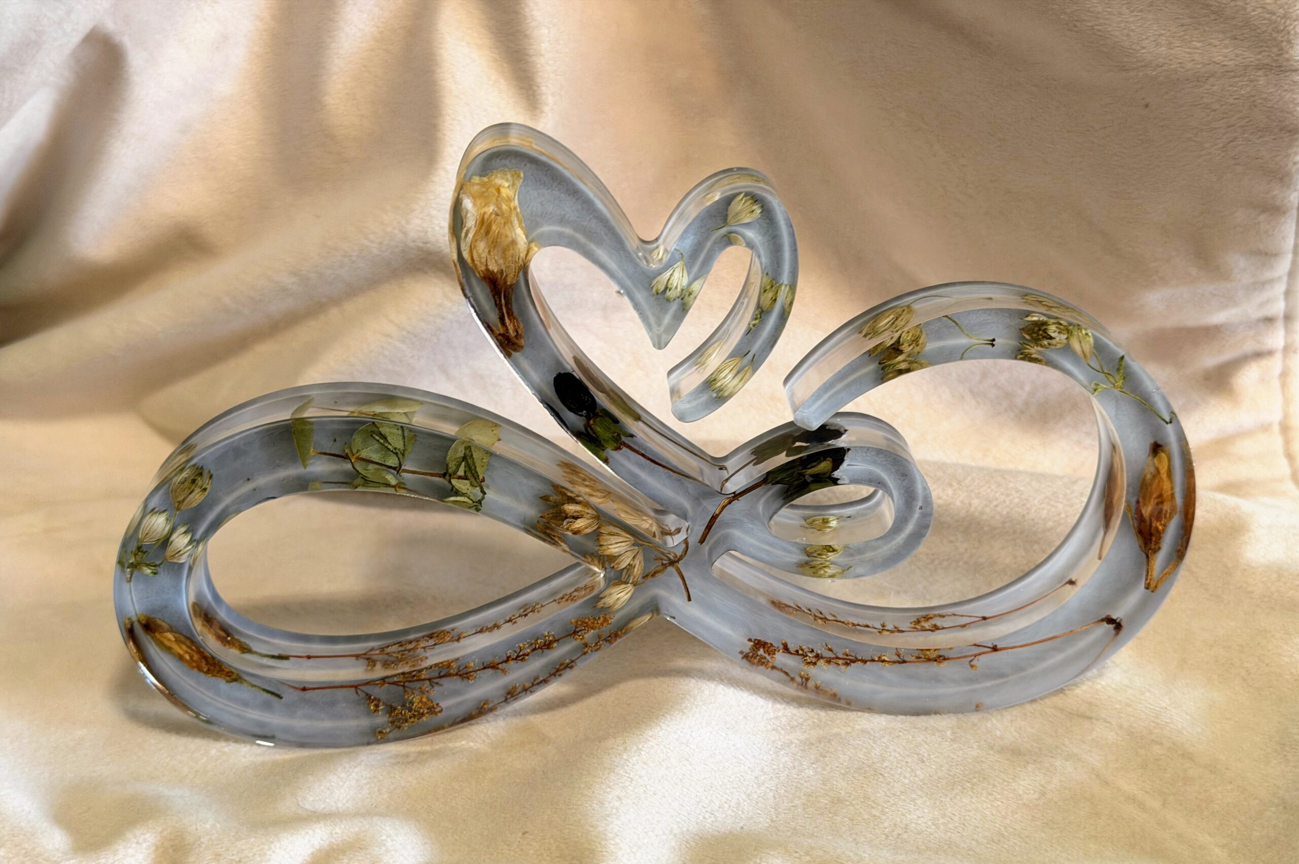 Bewahre den Zauber deiner Hochzeit: Mit dieser Infinity-Schleife aus klarem Epoxidharz kannst du deinen Brautstrauß haltbar machen – ein einzigartiges Erinnerungsstück voller Liebe und Bedeutung, handgefertigt in Österreich.