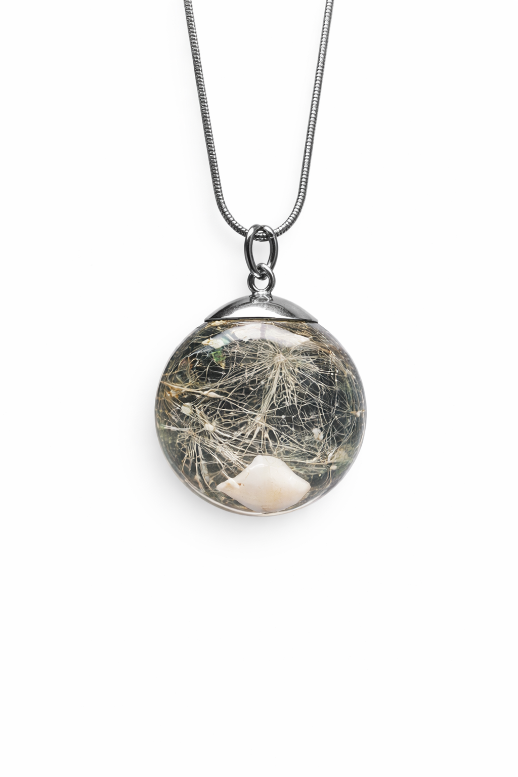 Mit diesem runden Anhänger in Kugelform verewigst du den kleinen großen Meilenstein deines Kindes auf ganz besondere Weise. Eingebettet in klares Harz wird der erste Milchzahn gemeinsam mit einer filigranen Pusteblume zu einem zeitlosen Unikat – zart, bedeutungsvoll und für immer.